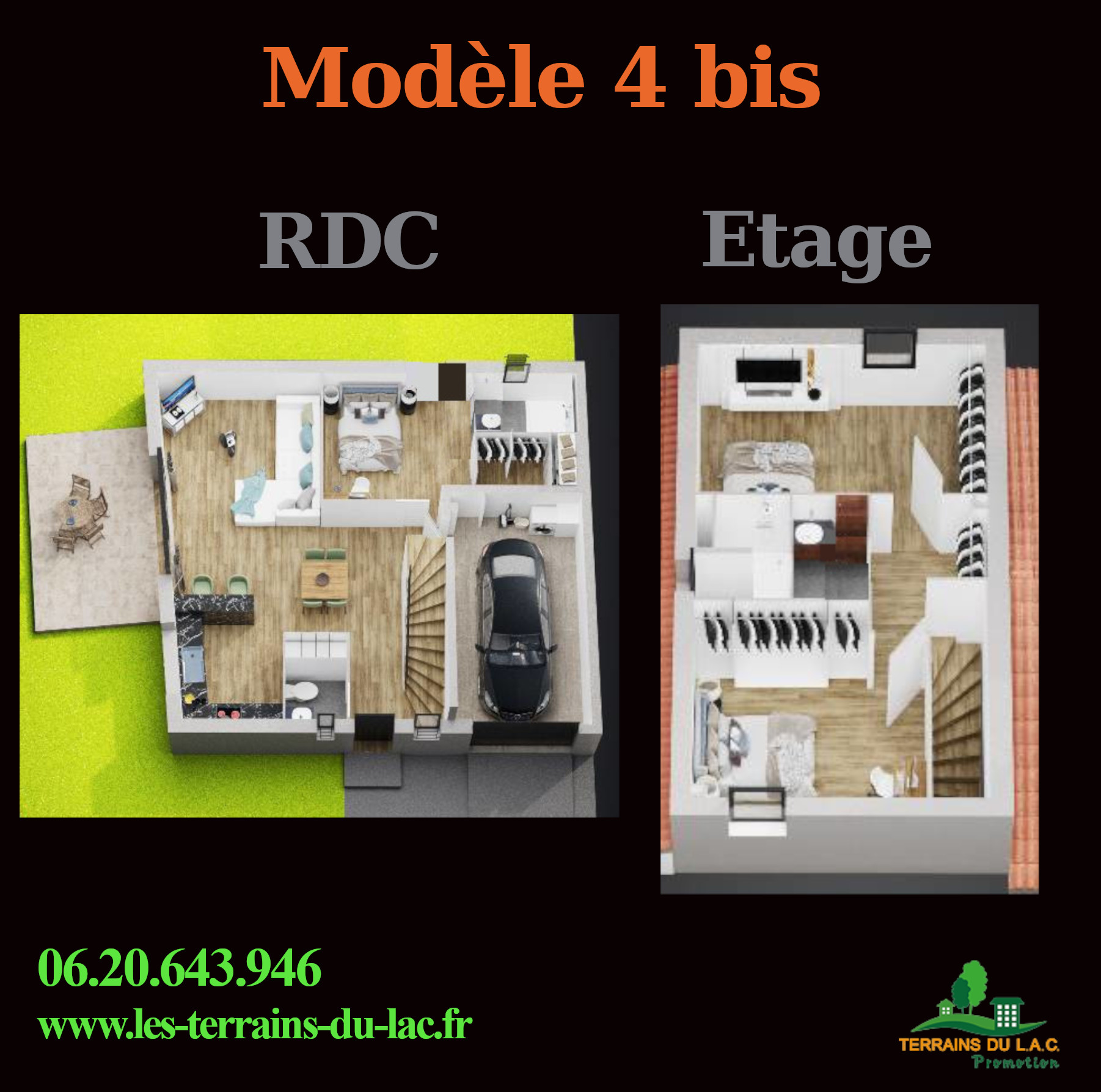 salle d’eau : douche à l’italienne au RDC 120×90 / Etage : bac extra plat